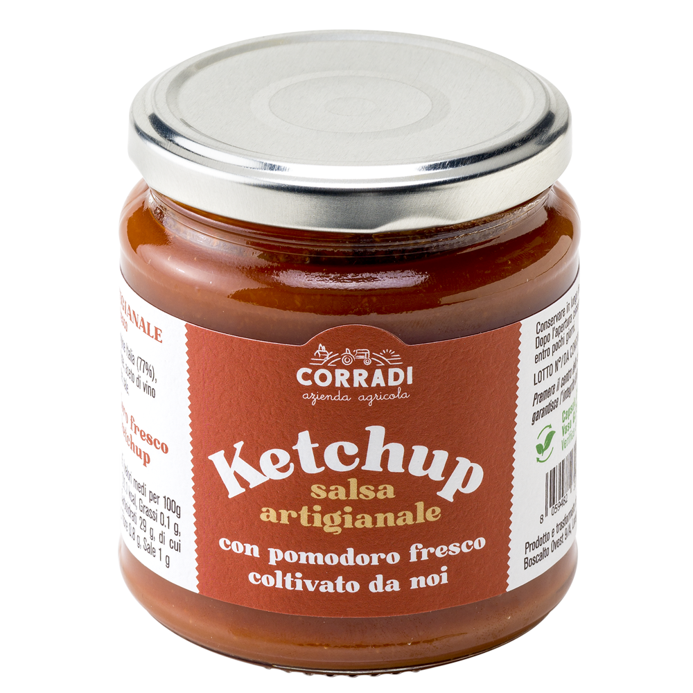 I nostri pomodori freschi, coltivati a Marcon e lavorati nel nostro laboratorio artigianale: ecco la base per una salsa ketchup genuina, naturale e gustosa, imbattibile sulle patatine fritte e sorprendente su carni, come hamburger e polpette, ma anche su tartine, crostini e formaggi.